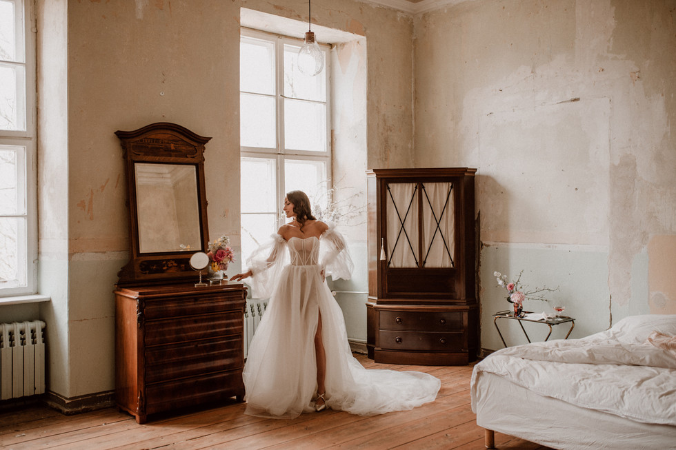 Das ganze Shooting fand im Schloss Roskow statt, ein altes kleines Schloss in Brandenburg, mit viel Charme für eine tolle Hochzeit.